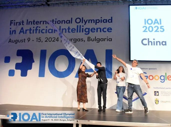 ▲2024首届IOAI闭幕式会旗交接仪式,时任中国队领队郑子杰老师接过会旗