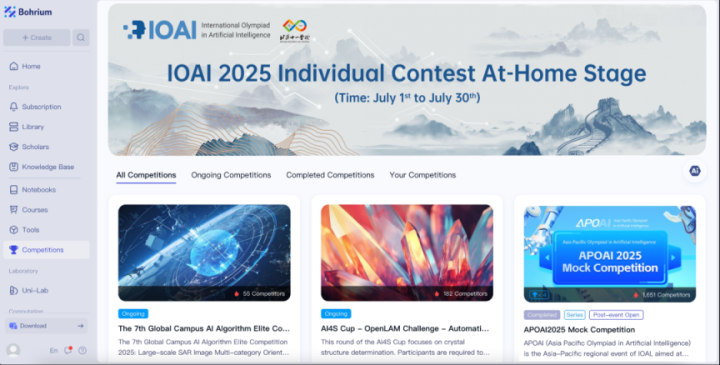 ▲个人挑战平台:深势科技玻尔科研空间站界面